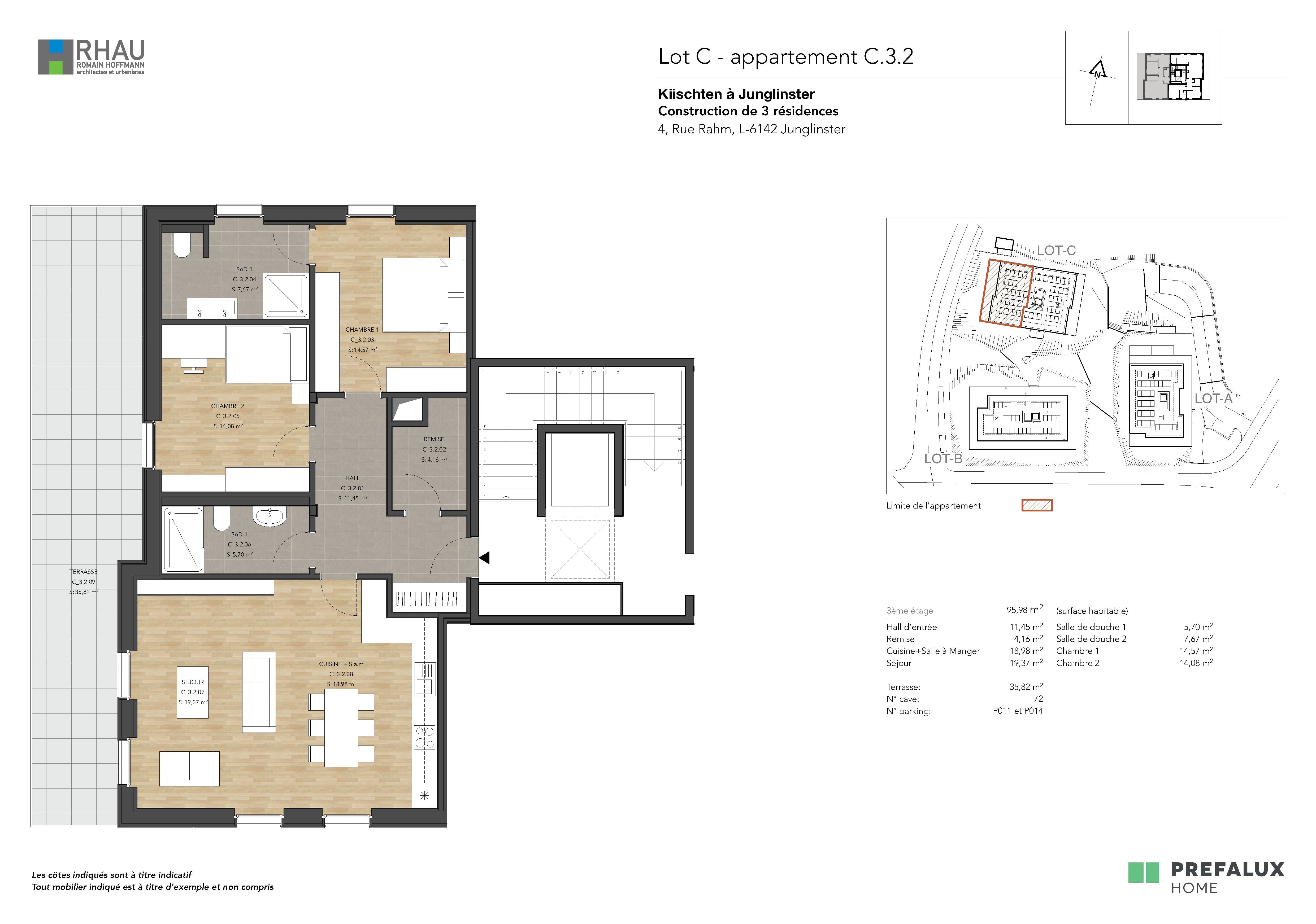 C C3.2 2 2 CH ÉTAGE 3 96 36 1 040 000 € Je suis intéressé
